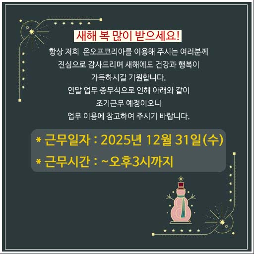 운영시간 : 월~금 AM 09:00 ~ PM 18:00